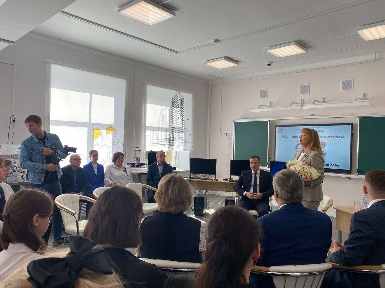 В обновленных стенах школы прошло торжественное открытие голографического класса и знаковая встреча, в ходе которой губернатор Архангельской области Александр Витальевич Цыбульский провел открытый диалог с учащимися инженерных классов. Школьная мастерская превратилась в дискуссионную площадку, где обсуждали будущее региона и его перспективы.
